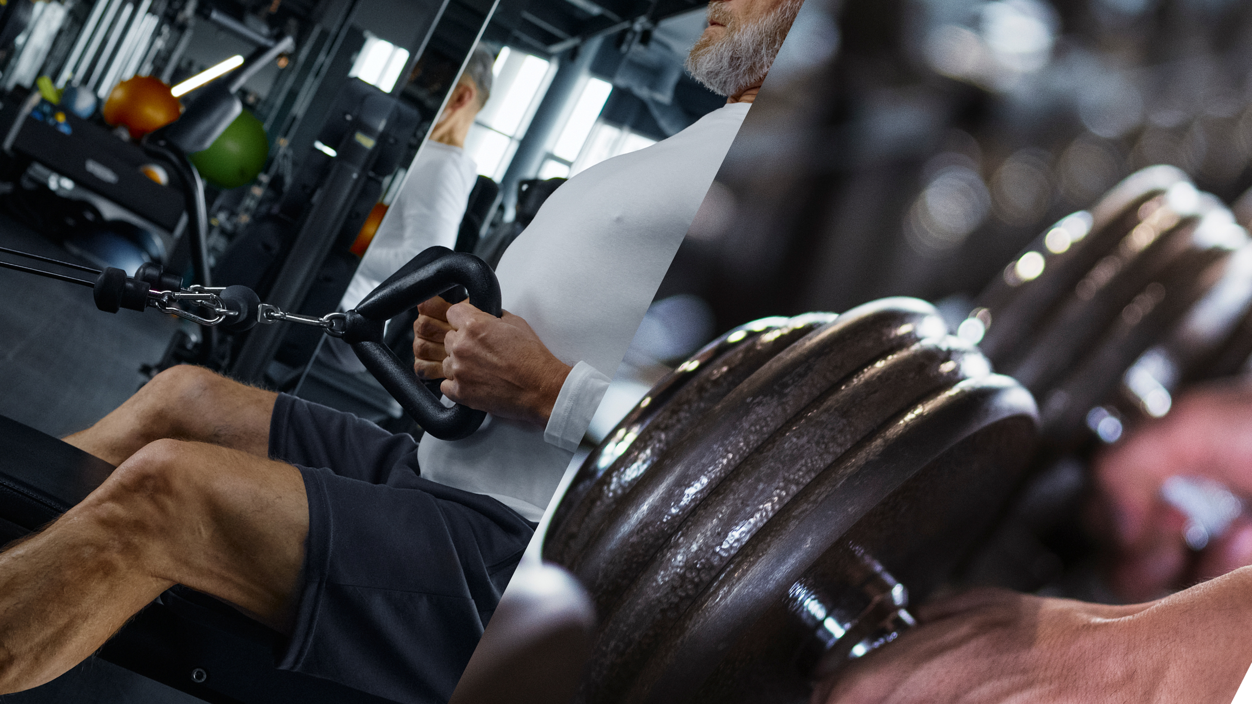 Typical commercial gym equipment. Specifically, barbell, weight plates, squat rack, adjustable bench, pull-up bar, full dumbbell set, adjustable cables, lat pulldown, seated row, leg extension, leg curl, leg press/belt squat, dip bars, GHD.